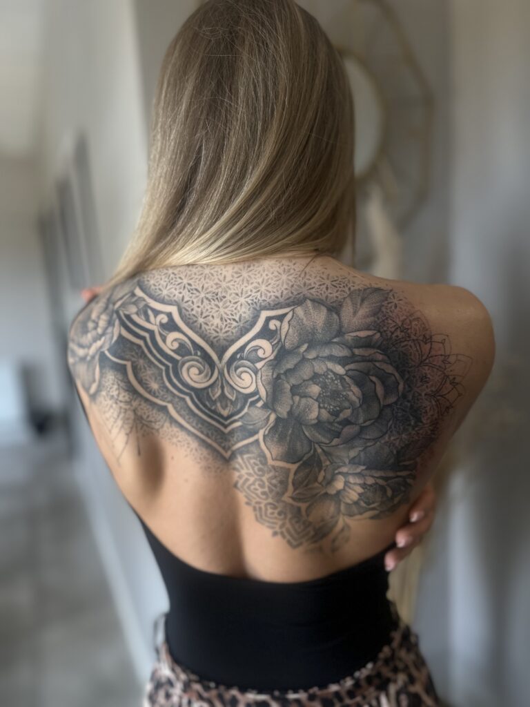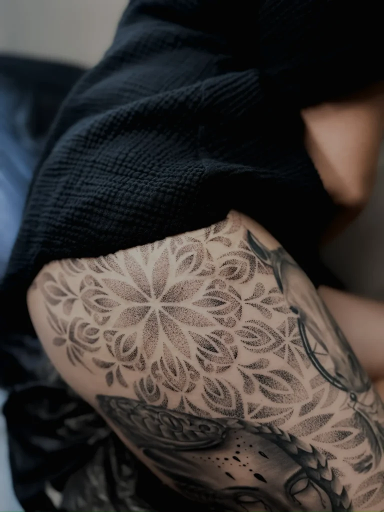 Gdy poczujemy, że wizja jest spójna, przypieczętowujemy nasz termin zadatkiem, co pozwala mi w pełni oddać się procesowi przygotowania Twojej unikalnej, osobistej mapy symboli. Każdą sesję traktuję jak wyjątkowe spotkanie w atmosferze spokoju i obecności, gdzie w bezpiecznej przestrzeni Twoja historia trwale splata się z materią. Po wszystkim nie zostawiam Cię samej – dbam o to, byś wiedziała, jak czule zaopiekować się nowym dziełem, pozostając z Tobą w kontakcie na każdym etapie jego gojenia.